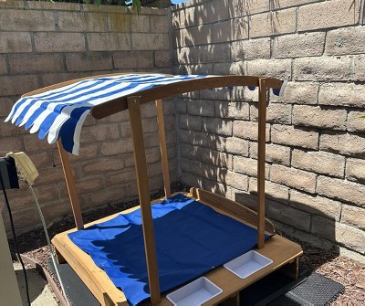 I love this sandbox. It’s beautiful. My 4 year old was given this as a birthday gift and once I set it up she wanted to go play in it immediately. The quality of it is pretty decent. I love that it comes with a canopy and a sand cover! My only issue is that one of the boards was damaged upon arrival. I ended up using it anyways because it was needed. I just had to screw it in differently.