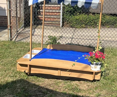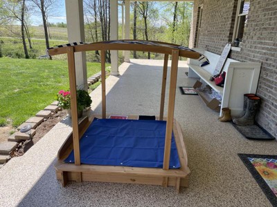 This sandbox is the perfect size for our grandson (2) to play in when he comes to visit. It has a smaller footprint and comes with everything you need to provide a safe, clean play area. I got a yard of sand to fill it and had a lot left over (was able to level off some pesky spots in my yard with the extra). The cover and shade canopy make it a great addition to our yard.