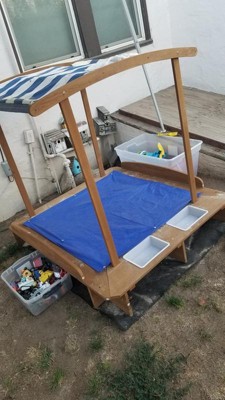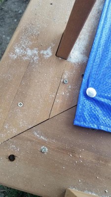 A large wooden piece was broken. I tried to contact company with provided email. No such email. Then contacted Target who told me to reorder and take piece out I needed. Did this and it was not a perfect match but had already put most of it together. There is just a piece of plastic on the bottom. The sand comes out! There should at least had been something around the edges to keep sand in! Terrible instructions also.