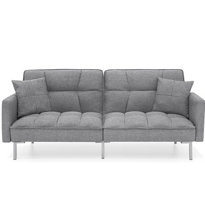 Best Choice Products Modern Linen Convertible Futon Sofa Bed w/ Removable Armrests, Metal Legs, Cupholders - Aqua