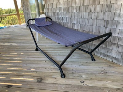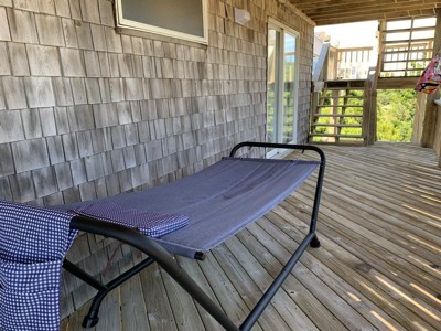 [This review was collected as part of a promotion.] This hammock provided much needed relaxation, naps and book reading on our rental house deck at the beach! The set up was fast and easy. The fabric is comfy. There is not much sway in this hammock, which is fine when you’re reading a book. It actually feels like you’re laying on air! I did have to add another pillow for the maximum napping effect! We used it a lot in the 2 weeks on our vacation. Now we’ll set it up in the backyard under the maple trees, close our eyes, feel the breeze, hear the leaves blowing and pretend we’re still on vacation! I would definitely purchase this product again.
