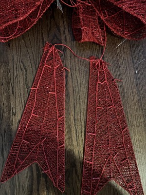 Beautiful bow! Very well made. Directions were a bit confusing, but totally worth it in the end. I am using for outdoor display, but these are coated in red glitter. Something to think about for indoor use!