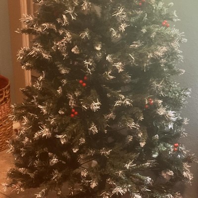 - PRE-DECORATED DESIGN: Made with 250, 350, 460, and 700 incandescent lights (based on tree size), with pine cones and artificial berries evenly dispersed throughout the tree's partially flocked branches to create a natural look that brings a feel of the outdoors into your space
