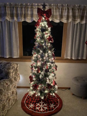 I wanted something somewhat tall (6 ft), nothing bulky and heavy! As we get older, the regular size trees were so heavy, this pencil tress is perfect for the weight and size I need in my area! I can even set it up myself! Yes it’s a lot thinner but still can fluff it up to look great!! Love the pine cones, berries and fake snow!