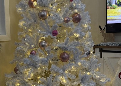 - BEAUTIFUL AND FESTIVE: This tree's premium materials create a lifelike, all-white appearance that is complemented by hundreds of incandescent lights to add a touch of warmth and elegance to this year's Christmas magic; Number of Lights (4.5ft/6ft/7.5ft/9ft): 200/ 250/ 550/ 900