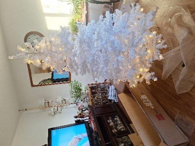 Make a bold statement this season with a dazzling white tinsel Christmas tree! This unique, shimmering tree is pre-lit with warm white LED lights for a cozy glow, with branch tips that capture and reflect light, creating an eye-catching display. Designed to impress, each size (from 6 to 9 feet) comes with hundreds of lights and thousands of shimmering branches to brighten any room. Assembly is simple: stack, secure, and fluff, so you can enjoy a festive atmosphere in no time. Built for lasting holiday cheer, it stands tall on a sturdy metal base for a glamorous, vibrant Christmas!