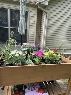 [This review was collected as part of a promotion.] I bought this to grow few veggies and I think it will work out well. I like that it has casters with brakes so I can move it. I like that it has a liner for the dirt and holes in the bottom for drainage.