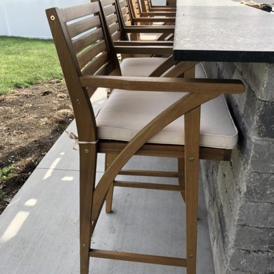 Best Choice Products Set of 2 Outdoor Acacia Wood Bar Stools Bar Chairs w/ Weather-Resistant Cushions - White Sand