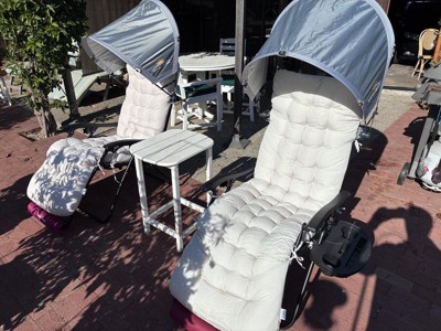 Great chairs! I equipped them with head shades from GCI and foam footrests from Clever Camper. Our backyard thrones!