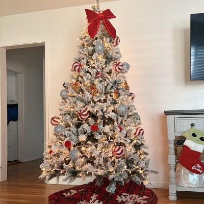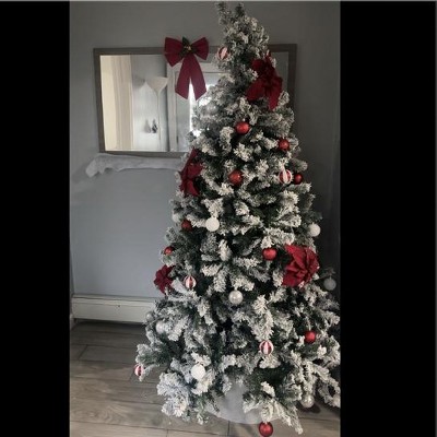 - ELEGANT SNOW-FLOCKED DESIGN: Experience a white Christmas as the vibrant green PVC pine needles are beautifully enhanced by a snow-flocked finish, transforming your home or office space into a winter wonderland!