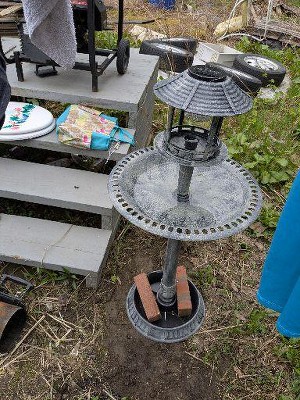 [This review was collected as part of a promotion.] I really liked the idea of the birdbath with the birds on it. Our concern is that it’s so flimsy and the bowl that holds the water is crooked and we don’t know how to straighten it.