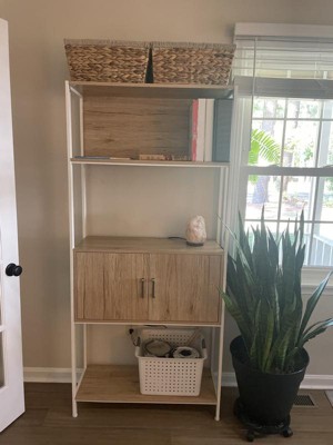 - ENCLOSED STORAGE: Designed with open and closed space for storage, this bookshelf allows you to display fashionable decor while hiding away other items such as books, magazines, and more