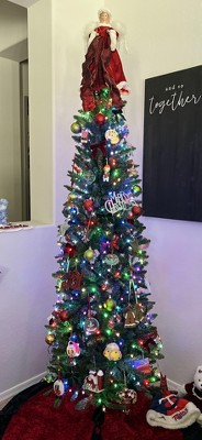Draw up a merry little Christmas this year with this dazzling pencil tree. Pre-decorated for your convenience, this tree lets you get the most out of decorating, and with minimal effort. While complexly beautiful, this tree features a simple 3 step assembly: step 1 connect the base to part A, step 2 attach the remaining sections, step 3 fluff the tree for maximum coverage! Evoke holiday cheer this season and many more to come!