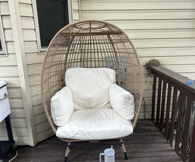 Best Choice Products Wicker Egg Chair Oversized Indoor Outdoor Patio Lounger w/ 440lb Capacity - Gray/White Sand