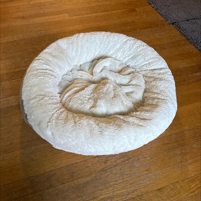 I got this bed for my dog who loves to sleep in a circle in her blankets and wanted it for her kennel at night and when we leave the house. It was smaller than I thought, but it is so squishy and soft that it is perfect for her! She wasn’t sure about the attached blanket, so I just flipped it so that it wraps around the outside of the bed and now she and our other dog (who is much too big for it) love it!