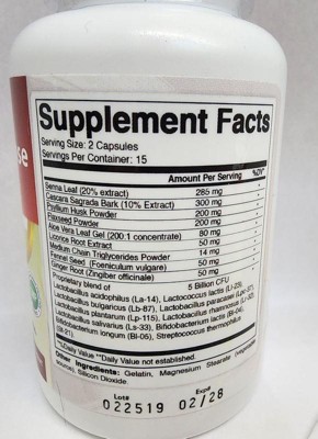 [This review was collected as part of a promotion.] This supplement is very similar to the other I used before from the different company. It includes herbals such as senna, Cascara Sagrada, Psyllium, aloe, Fennel, ginger and probiotics. This blend is very effective. This capsules are easy to swallow and no aftertaste. I don't have any side effects. This capsules made in USA in GMP facility, so I am pretty confident in the quality of this supplement.