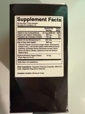 [This review was collected as part of a promotion.] I typically take glucosamine chondroitin with MSM, so this was a great swap! I love that it contains vitamin D, calcium and potassium. I've heard tumeric powder also helps with joints, so I'm happy this contains it. There is one extract in here that was a little unusual for me - black pepper. I have very sensitive senses so I could smell it as soon as I opened the bottle. I also could taste it. I was a little afraid it would interact negatively with my acid reflux. But there were no issues! So far, so good with this product. I feel good and have had no joint pain (which I typically get in my knees).