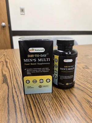 [This review was collected as part of a promotion.] Best natural day to day men multi is highly recommended. Each package comes with a 90 day supply and you take one daily so you have for 3 months. Comes packaged in a bottle and box. Tasteless, no weird after taste after taking. Safe to take