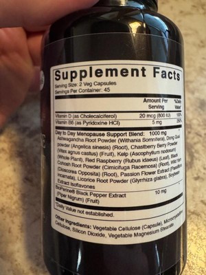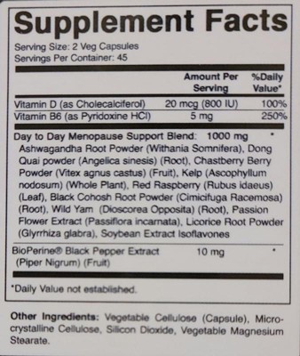 Best Naturals Day-to-Day Menopause Supplements for Women with Ashwagandha, Dong Quai, Chastberry, Kelp, Red Raspberry, 90 Veg Capsules