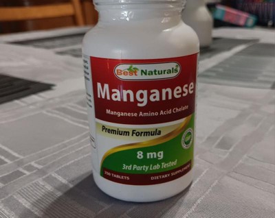 Best Naturals Manganese Manganese Amino Acid Chelate 8 mg- 250 Tablets