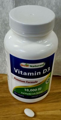 Best Naturals Vitamin D3 – 300 Tablets – Made in USA, Non-GMO, Gluten Free, No Artificial Color, Flavor or Preservatives–Dietary Supplement(10000 IU)