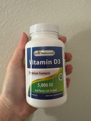 [This review was collected as part of a promotion.] I was gifted Vitamin D3 for an honest review from Best Naturals and Influenster. My usual D3 vitamin supplement is a gel tab. I was pleased with the small size of the tablet and that it is coated, so that it is easy to swallow. Should be effective with the 5000 IU. All in all happy with this product.