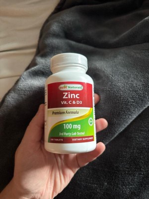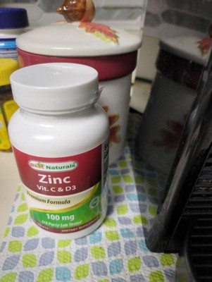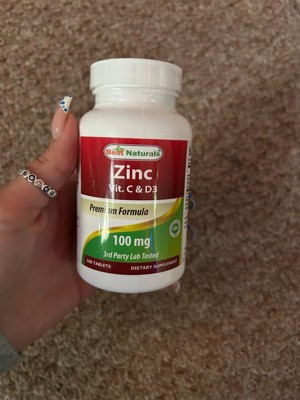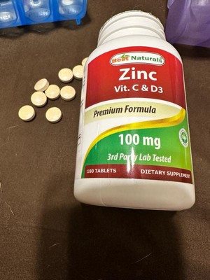 Best Naturals Zinc 100 mg with Vitamin C & D3 180 Tablets Gluten Free and Non-GMO
