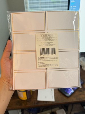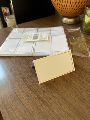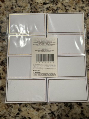 [This review was collected as part of a promotion.] Received 100 ct name cards for table setting for dining tables from Influenster . They are card stock, gold trimmed, and good quality. Very durable and double sided. Just in time too. My daughter is getting married so these will be put to good use for seating and the food items being served.