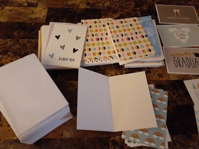 [This review was collected as part of a promotion.] Best Paper greetings 144-Pack Assorted greeting cards set gives you a nice variety of cards for any occasion. They are bright and colorful. I was not expecting them to be blank inside but it's really not a big deal. They are nice to have on hand!