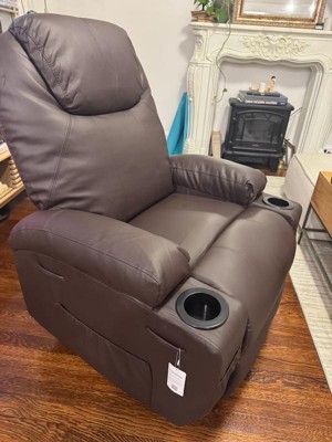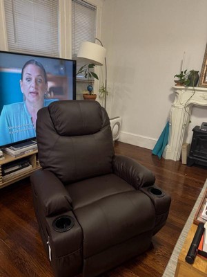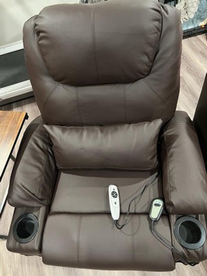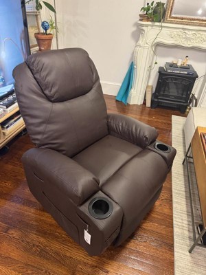 [This review was collected as part of a promotion.] I must say I loveeeee this chair. Its leather is so soft and comfy. It has multiple functions including massage, neck massage, and it can even push you up if you need to stand up after a long relaxing time. It has 2 cup holders. I fall asleep here after the first try.