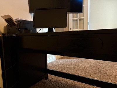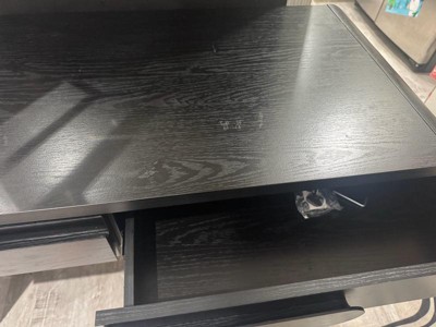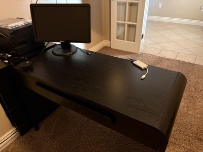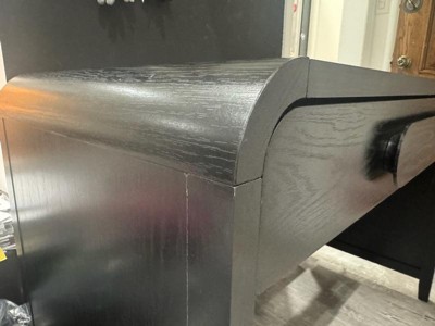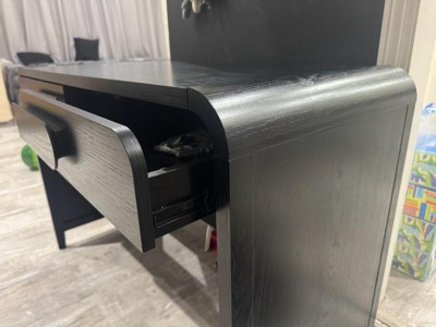 [This review was collected as part of a promotion.] I’ve really been enjoying this 45" Black Wood Waterfall Writing Desk. It has a clean, modern look with its smooth black finish and waterfall design. The two sliding drawers are easy to open and give me just enough space to keep things organized. I also love the curved statement pulls — they add a nice touch without being too much. Overall, it’s a sturdy, stylish, and practical desk that fits perfectly in my space.