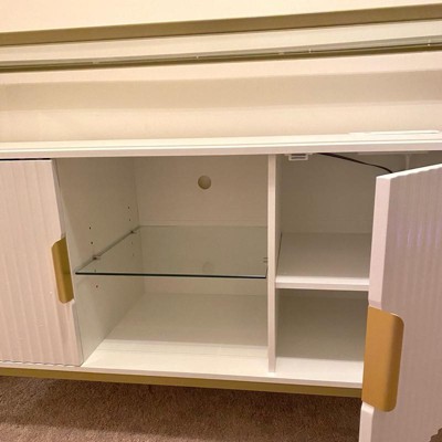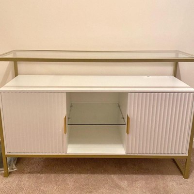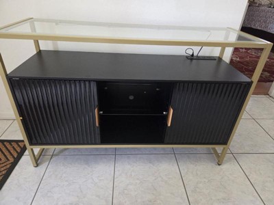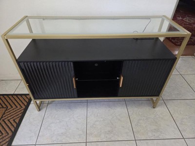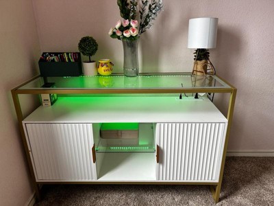 [This review was collected as part of a promotion.] Bestier black tempered glass 45.67 in. Sideboard with two cabinets and adjustable shelves is so beautiful in my entry way. Its multi level shelving is perfect for storing away your special items. Its LED light features should you choose to use it, adds another wonderful compliment to the room its in.