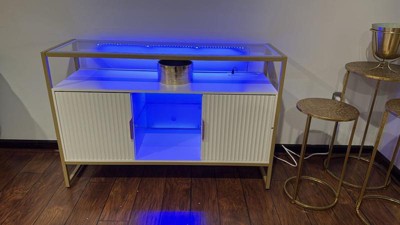 Bestier 47" Coffee Bar Cabinet with Adjustable Shelves,LED Sideboard Cabinet with Power Outlet and Glass Shelves,Entryway Table for Living Room, White
