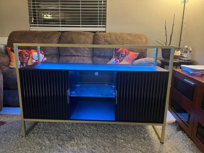 [This review was collected as part of a promotion.] Bestier black tempered glass 45.67 in. Sideboard with two cabinets and adjustable shelves is so beautiful in my entry way. Its multi level shelving is perfect for storing away your special items. Its LED light features should you choose to use it, adds another wonderful compliment to the room its in.