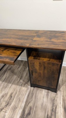 Upgrade your workspace with this 48" Computer Desk, combining style and functionality. The sturdy design features a spacious work surface, a convenient cabinet for storage, and an open shelf for easy access to essentials. The built-in keyboard tray ensures ergonomic comfort, making it perfect for work or study. Its rustic brown finish adds a warm, natural touch to any room. Compact, practical, and stylish—ideal for home offices or small spaces!