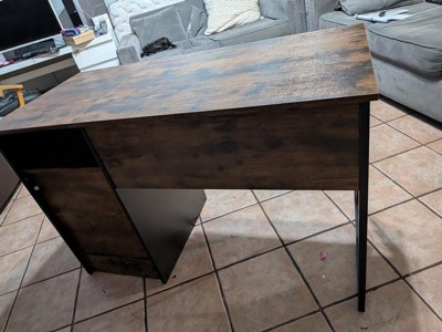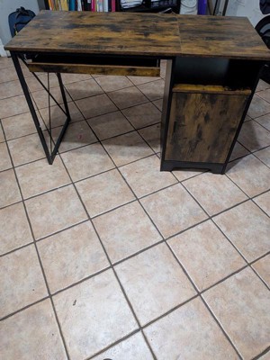 [This review was collected as part of a promotion.] This desk is nice and stylish. It is gray but has brown undertones to it. It’s nice for simple, everyday tasks. It has a small keyboard pullout tray and a side top shelf. Right below it, behind the small cabinet door is an open space that does not have any shelves. This is good if you were looking to put away something larger like a backpack. The desk doesn’t have any cable management openings in the cabinet nor tabletop so it is best for computers with wireless devices or very minimal cords. Assembly was easy and straight forward. It took a bit over an hour to put together. The desk is made out of compressed wood and fairly easy to move around once put together. You do have the ability to assemble the desk to have the shelf/cabinet space to be on either the right or left hand side. Overall it’s a nice, stylish, lightweight desk!