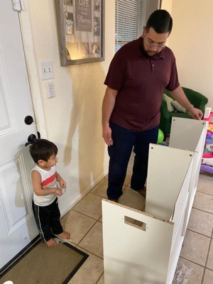 [This review was collected as part of a promotion.] Super easy to put together but a bit time consuming (I did it alone) with all of the screws. Material felt a little cheap and I wasn't thrilled that the gold legs didn't match the gold handles. It still looks nice in my room, but be warned...there are TWO DIFFERENT TYPES OF HINGES. This is crucial.
