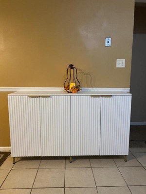 [This review was collected as part of a promotion.] Love the white and gold color scheme along with the design on the front of the cabinets! Super functional in my dining room with the added storage and I will have fun decorating it according to the season. Also a plus I can charge my devices with this piece of furniture. Assembly I would recommend having two people just to make it easier and go faster. All in all I would recommend if you’re looking for something stylish and useful!