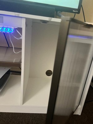 This is a nice tv stand with cool lighting. I chose the black one and the surface is very smooth. There is plenty of storage space.