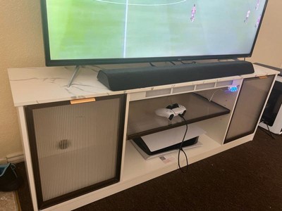 [This review was collected as part of a promotion.] I recently moved into a small apartment, and this TV stand is absolutely perfect for my space. It fits my 55 inch TV beautifully, and my PS5 console finally has a happy home where it sits securely. Assembly was straightforward just follow the manual included in the box. It took me about an hour to put everything together, mostly because I had the kids around. The packaging was compact and not too heavy, which made it easy to carry and unpack on my own. All the tools you need, like the screwdriver, come right in the package, which was really convenient. I’m really impressed with the quality and how sturdy it feels. The build looks durable and well made, so I’m confident it will last a long time. The LED lights with all their modes and options add such a nice touch and make movie nights feel extra special. The white marble color looks sleek and modern, matching perfectly with the rest of my setup, including my computer and PS5. It has a clean, minimalist style that I absolutely love. Overall, I highly recommend this TV stand it’s stylish, functional, and a great value.