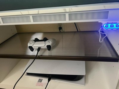 Spacious Storage: This media console has 2 gold aluminum frame acrylic door cabinets, providing ample room for your game setup. The gaming entertainment center for PS5 holds TVs up to 65". Built-in cable holes hide PS5/audio wires. Use as an open-shelf entertainment center in game rooms or dens.