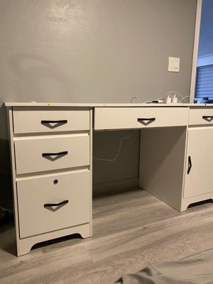 [This review was collected as part of a promotion.] We love how big this computer desk is. And it got so many drawers we can put stuff away in all these drawers very spacious. Easy to set up and highly recommended.
