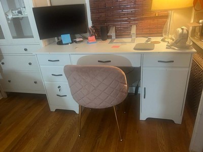 [This review was collected as part of a promotion.] I got this 59-inch computer desk for my son, and it’s been a great choice. He uses it daily for schoolwork and his art projects, and the large surface gives him plenty of room to stay comfortable and organized. The drawers and cabinet are perfect for storing his supplies, which helps keep the top clear. It feels very durable and sturdy once assembled, which is important since he leans on it a lot when drawing and writing. Assembly did take us about 2 hours — not difficult, but it definitely requires some time and patience. Once set up, though, it feels solid and stable. The desk is also comfortable to sit at for long periods, which is important for homework time. I like the clean, modern look, and it fits nicely in his room without being too bulky. Overall, this has been a durable, functional, and comfortable desk that my son really enjoys using every day.