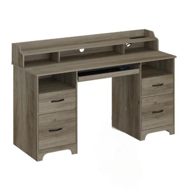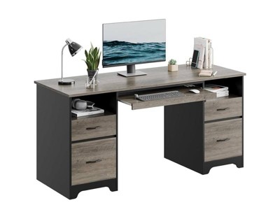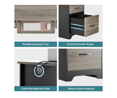 Bestier 59"Wood Executive Desk with Drawers, Computer Desk with Keyboard Tray,Home Office Desk with Charging Station&Monitor Stand&File Cabinet,Grey