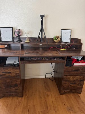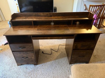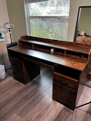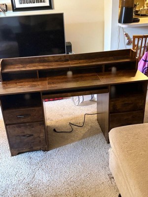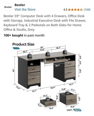 [This review was collected as part of a promotion.] The Bestier 59” office desk with power outlet is a sturdy, attractive, and well made desk. The only drawback I would mention is that it took very long to build (3 to 5 hours). However once it was built I found it to be very good quality and design. I love the storage that it provides as well as the power outlet capabilities make it an amazing and multi use desk.