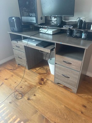 [This review was collected as part of a promotion.] Very nice desk! Planning on updating these pics when I get back from a vacation. I saved them before I left and lost them somehow. Wanted to get this review out before it was overdue. But, nice color, looks like the product photo. Fairly easy assembly. Drawers open and close smoothly. It has holes in the back for your cords. Nice amount of storage space, and a good size overall. I like that it has the drawers and the open areas.