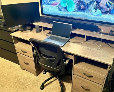 [This review was collected as part of a promotion.] This desk is practical and convenient. The built-in power outlet is incredibly convenient, keeping chargers and devices organized right where you need them. The two storage cabinets offer ample space for files and office supplies, keeping my workspace clutter-free. Assembly was straightforward, and the desk feels sturdy and well-built.
