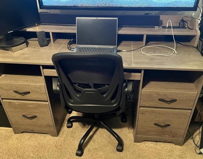 [This review was collected as part of a promotion.] I was offered this desk for free in exchange for my honest review. The Bestier 59” Office Executive Computer desk with 2 file and Storage drawers is a great work Desk. It comes in 2 colors, cherry or Grey. I chose the grey color. What I liked is that it can hold both legal and letter size file folders. It also has exit holes for the cords to come through the back of the file cabinets. It fairly well built for this price range and looks like higher quality furniture. I’m not sure about how hard it was to assemble, I left that up for one of my friends to do. (Warning the box is extremely heavy, and in my opinion it needs 2 people to be moved.)