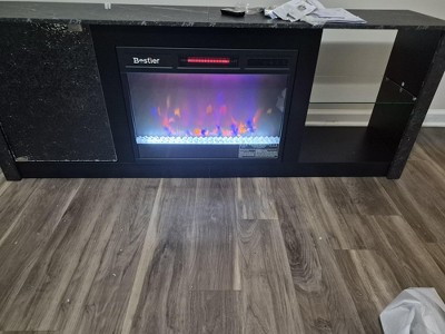23" Fireplace TV Stand: Fireplace operable via buttons or remote. Has crystal decorations, 7 adjustable flame colors, 5 brightness levels, 5 flame speeds. Temp adjustable 62℉-92℉. Enjoy flame effect alone without heating for free atmosphere adjustment.