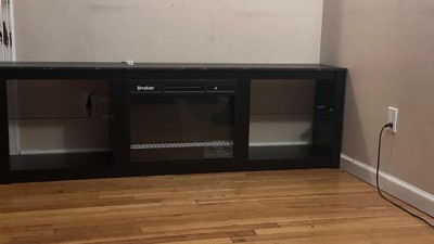 [This review was collected as part of a promotion.] This was quite a feat to put together but it looks so nice. Love the glass shelves for extra storage. Very versatile piece, and the fireplace is a nice touch